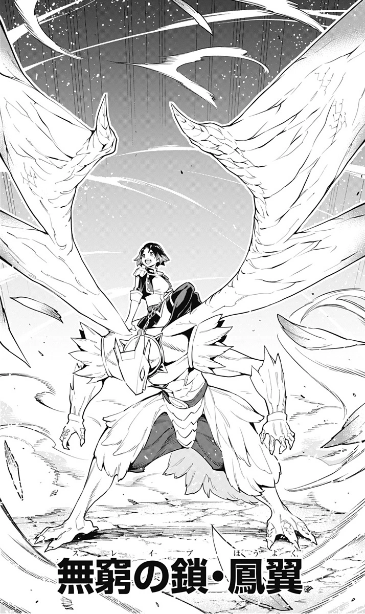 Slave-Edge Sword (隷刃の太刀, Reiha no Tachi, lit. "Sword of the Slave Blade") is a special technique of Kyouka's Slave ability, developed with Yuuki Wakura. By wrapping her slave's chain around her katana blade and concentrating, Kyouka is able to channel her slave's power into her weapon. This causes her slave to vanish, effectively fusing them with her sword. Yuuki must power up his original Slave form into its "Heavenward" form, in order to use this technique.